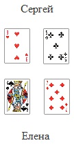 лежать две стопки карт, то есть сдатчик сдает каждому